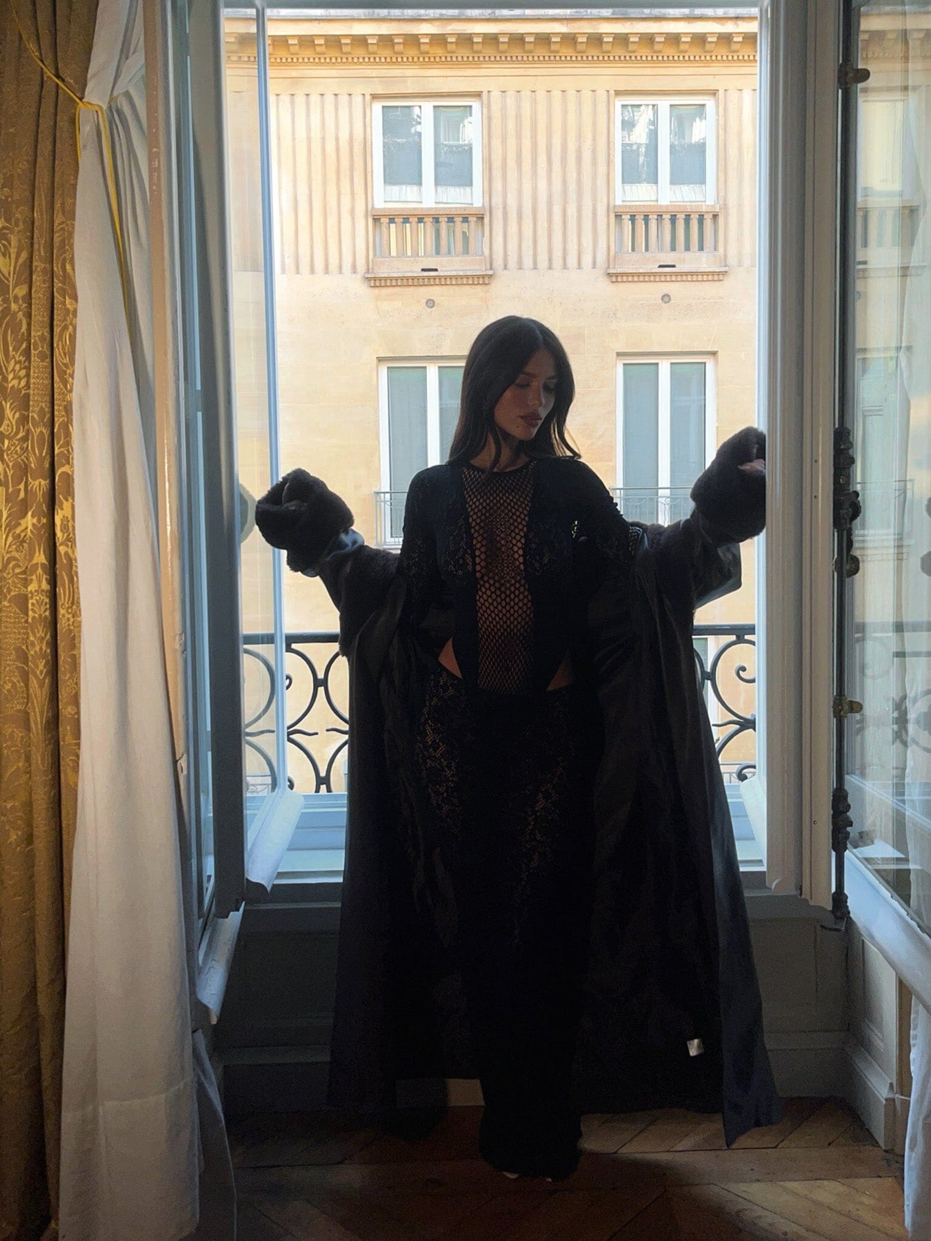 Introducing the 'Kerensa Bodysuit' in Black, a bold and contemporary piece designed to make a statement! Crafted from intricate lace stocking fabrication, this fitted silhouette features captivating fishnet-style panelling throughout, blending elegance with edge. The unlined construction creates a sheer effect, while t