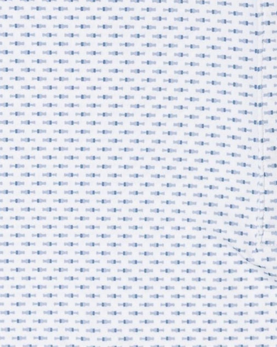The Mile High polo features a crisp white base that sets a clean and classic backdrop. Across the fabric. subtle yet striking green accents bring the shirt to life.  Pine trees. rendered in varying shades of green. are scattered artfully along the torso and sleeves. creating a serene forest feel. Above the trees. stylized mountain silhouettes rise in darker green hues. capturing the majestic peaks of a high-altitude range.